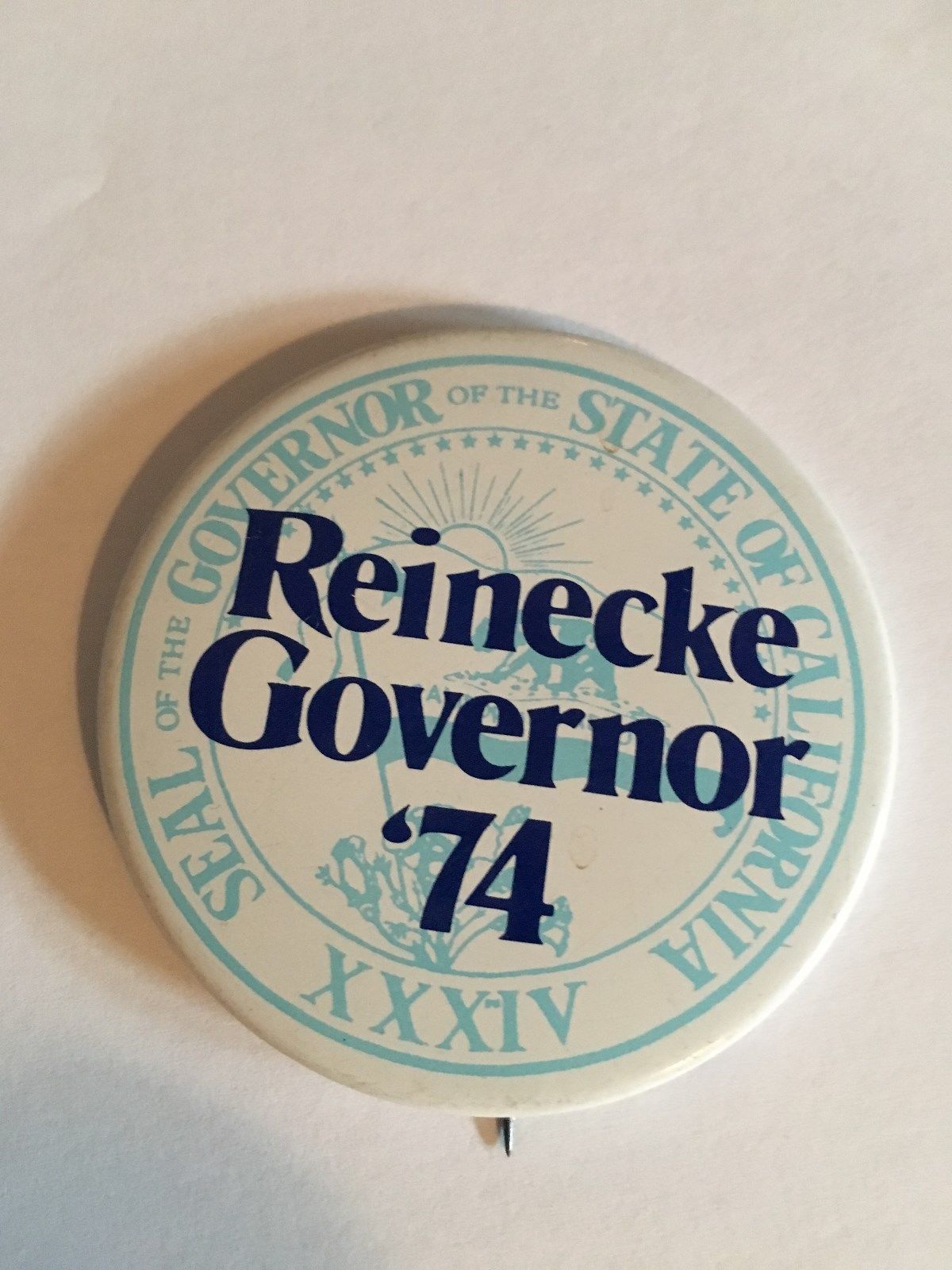 Vintage "Reinecke Governor ''74" pin back button--California Republican Primary