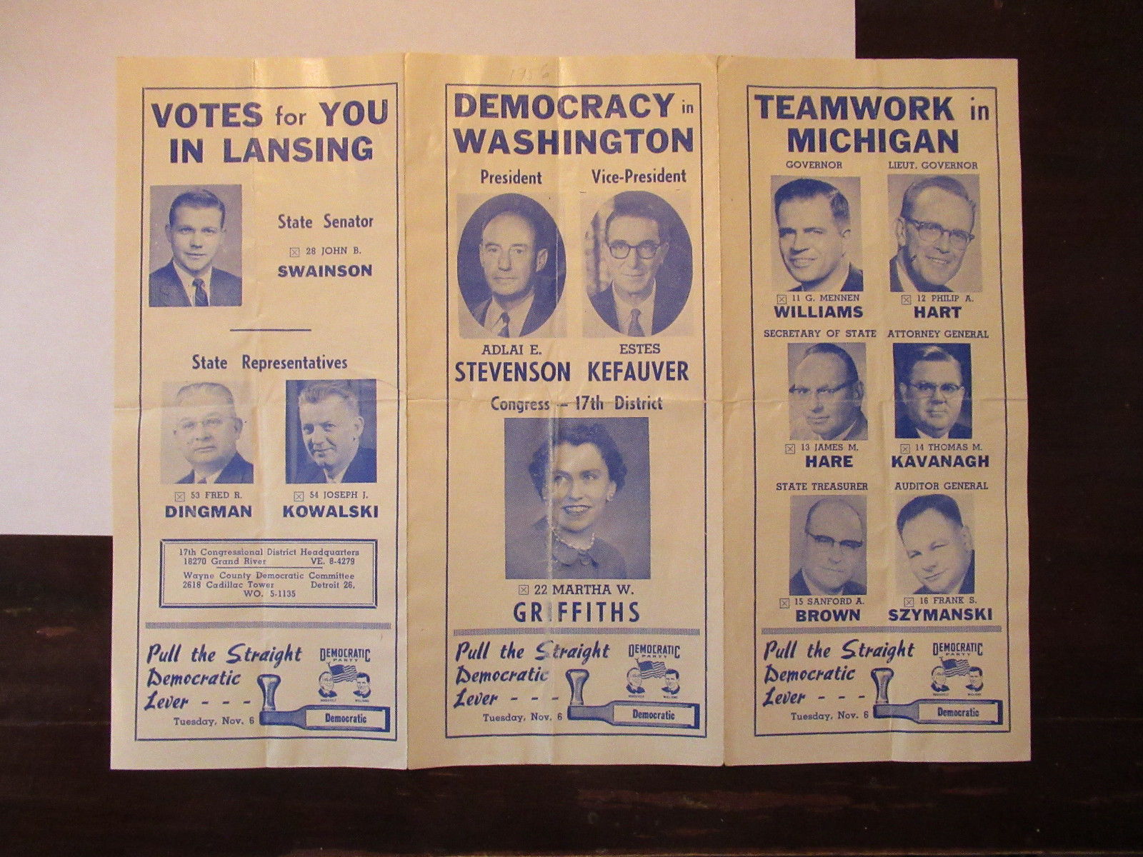 1956 ADALI STEVENSON Estes Kefauver Michigan Coattails Brochure