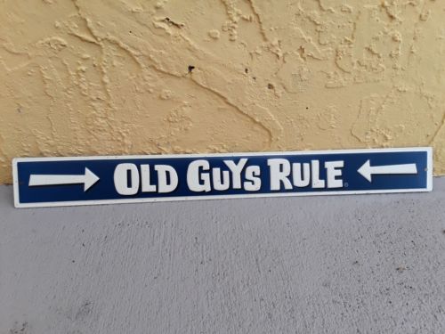 OLD GUYS RULE METAL SIGN RAISED LETTERS 18 BY 2 INCHES GAS SHOP MAN CAVE
