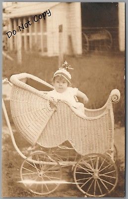 Title (ebay affiliate link): YOUNG BABY GIRL IN ANTIQUE WICKER STROLLER 1910''2 RPPC POSTCARD