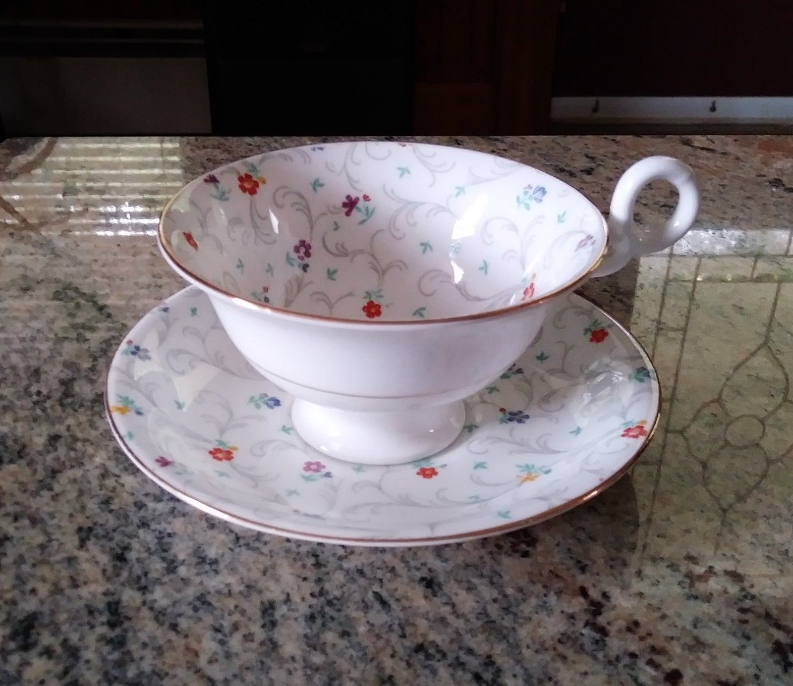Title (ebay affiliate link): Radfords Crown China Flowers, Gray Leaves & Gold Trim Footed Cup & Saucer