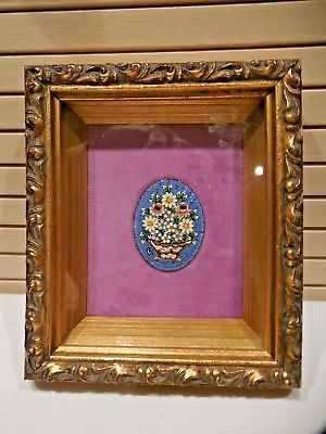 ITALIAN MICRO MOSAIC FLORAL SCENE IN SHADOW BOX FRAME