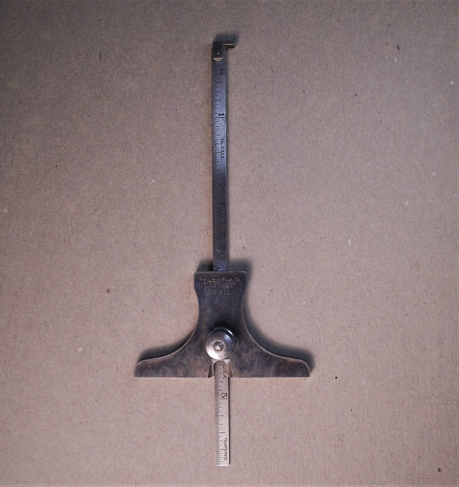 LUFKIN NO. 511 DEPTH & ANGLE GAGE WITH 6" HOOK RULE No.2310,TEMPERED VINTAGE