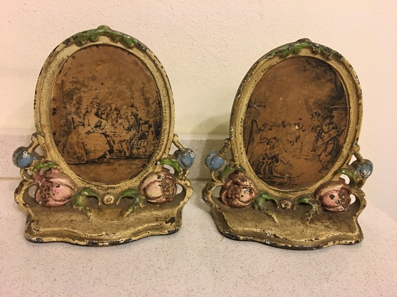 Antique Cast Iron LVL Victorian Bookends Doorstops Painted Flowers