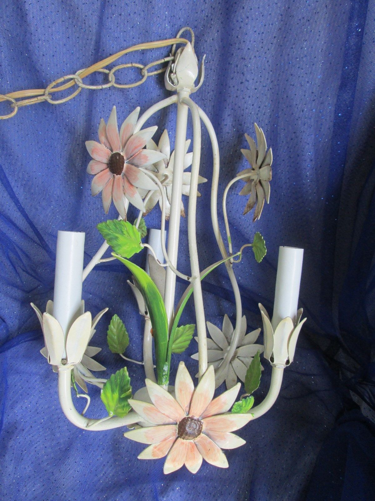 VINTAGE ITALIAN TOLE HANGING LIGHT FIXTURE FLORAL MADE IN ITALY