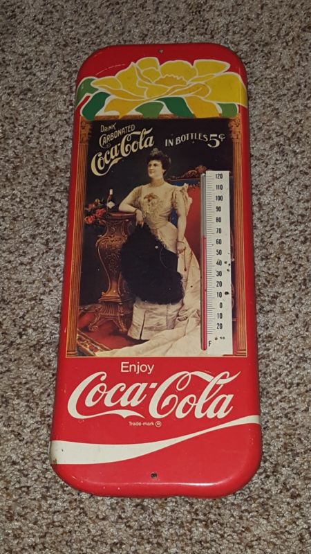 Title (ebay affiliate link): Vintage 1981 DRINK CARBONATED COCA COLA IN BOTTLES Metal COKE Thermometer