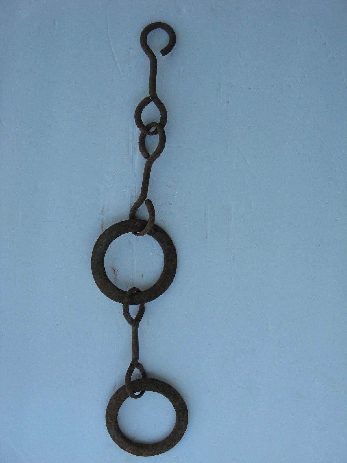 Title (ebay affiliate link): Vintage Rusty Grain Drill Drag Chain Rings & Hook Plant Hanger Rustic Decor Barn