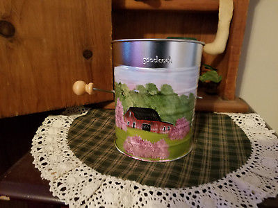 Title (ebay affiliate link): 3 cup flour sifter with hand painted spring barn scene (0418201804)