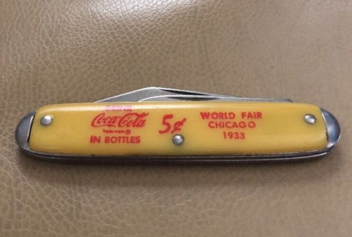 Title (ebay affiliate link): 1933 Worlds Fair Chicago Coke Cola pocket knife 2 blades Awesome