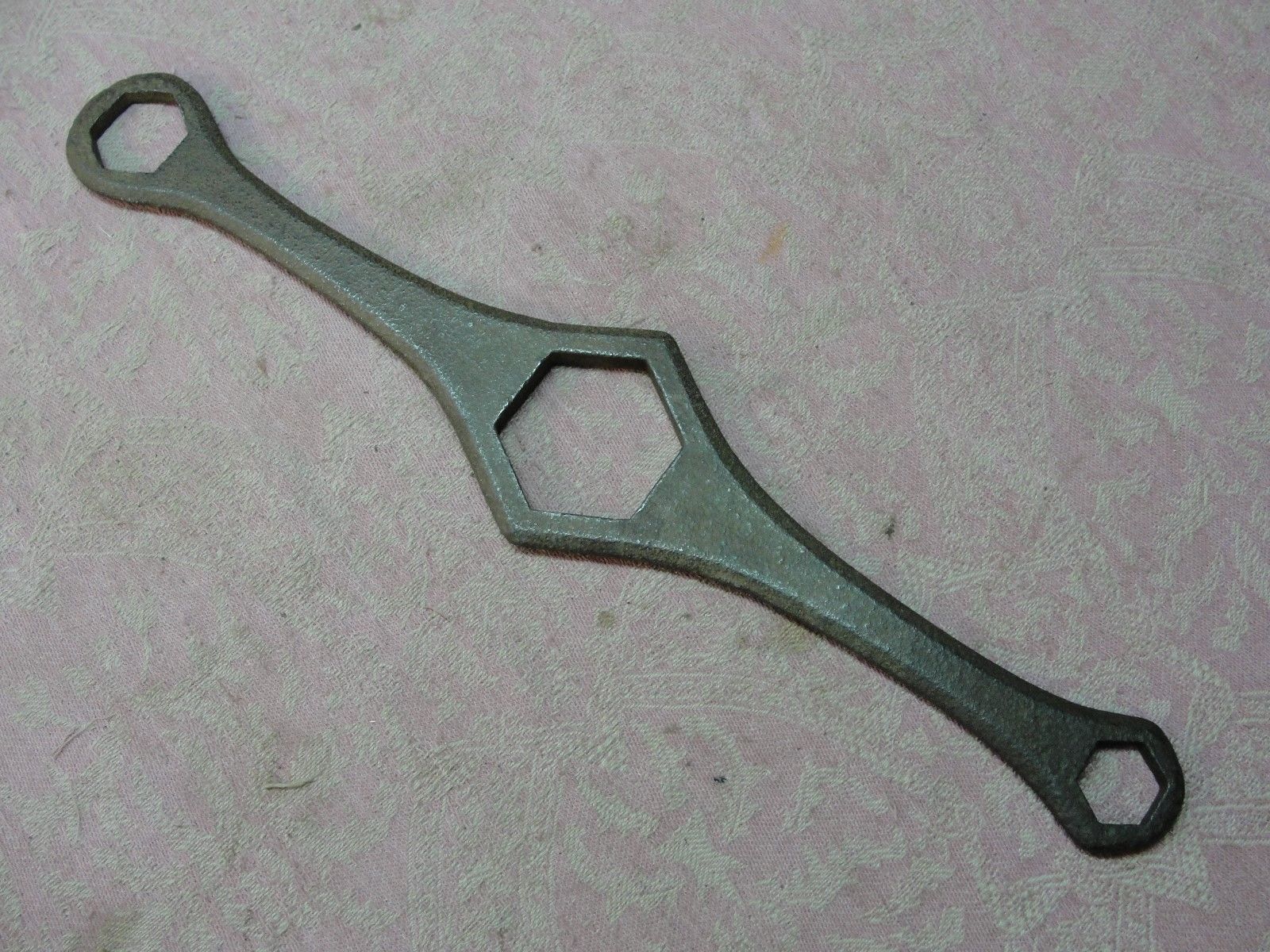 Antique Unmarked 14" Cast Iron 3 Size Tractor Buggy Wrench Farm Equipment Tool