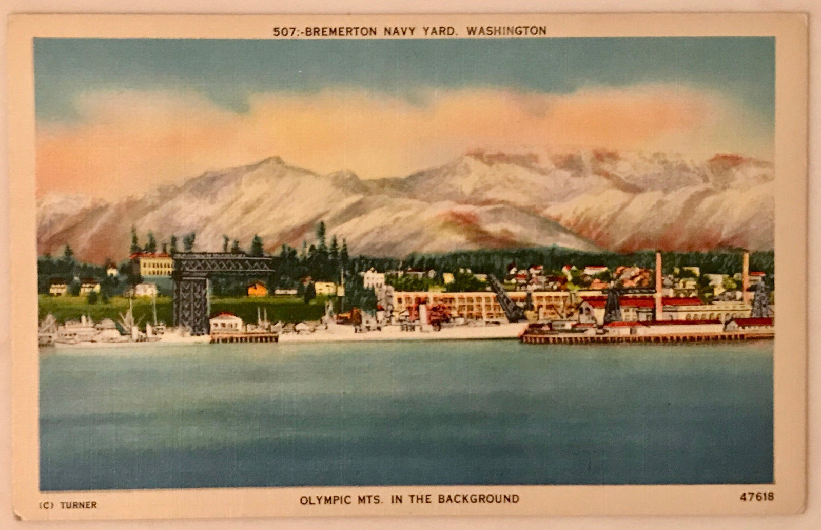 Title (ebay affiliate link): Postcard Bremerton Navy Yard Washington Olympic Mountains Ships Linen Unposted