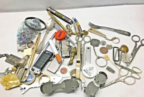 Title (ebay affiliate link): VTG Junk Drawer Box Lot metal lighter coin scissors keychain skate tool jewelry