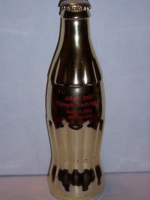 Title (ebay affiliate link): 8 OZ COCA COLA COMMEMORATIVE BOTTLE - 2004 OLYMPIC TORCH RELAY GOLD BOTTLE