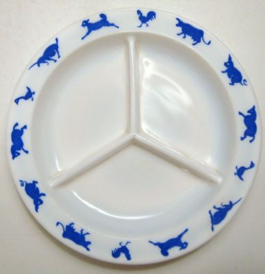 VINTAGE MILK GLASS 3 SECTION CHILD'S PLATE ANIMAL DECOR