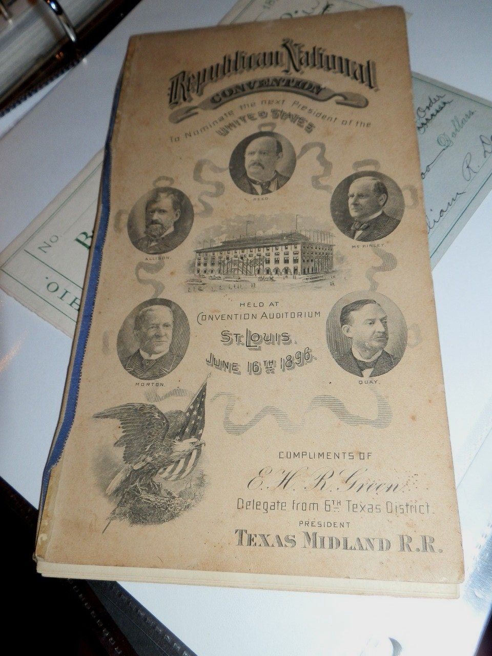 #6260,Republican Nat''l Convention,Seldom Seen Booklet Ballot Record,1896