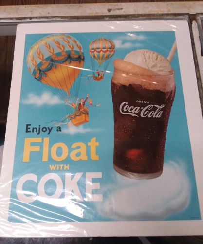 Vintage COCA COLA COKE FLOAT paper advertising sign
