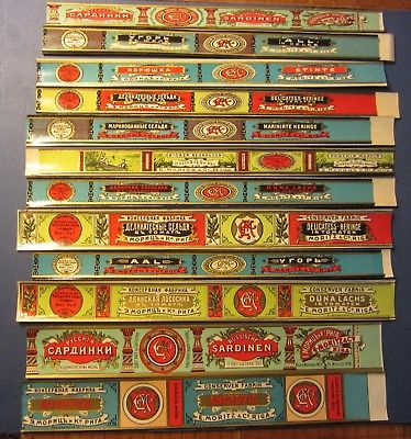 Lot of 12 Old Antique Russian - SARDINE / ANCHOVY Seafood / Fish LABELS RUSSIA