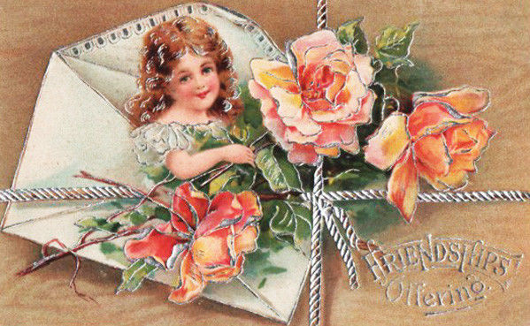 Title (ebay affiliate link): SUPER SPLASHY SILVER EMBEL. Embossed FRIENDSHIP Pretty Girl PEACH COLORED ROSES