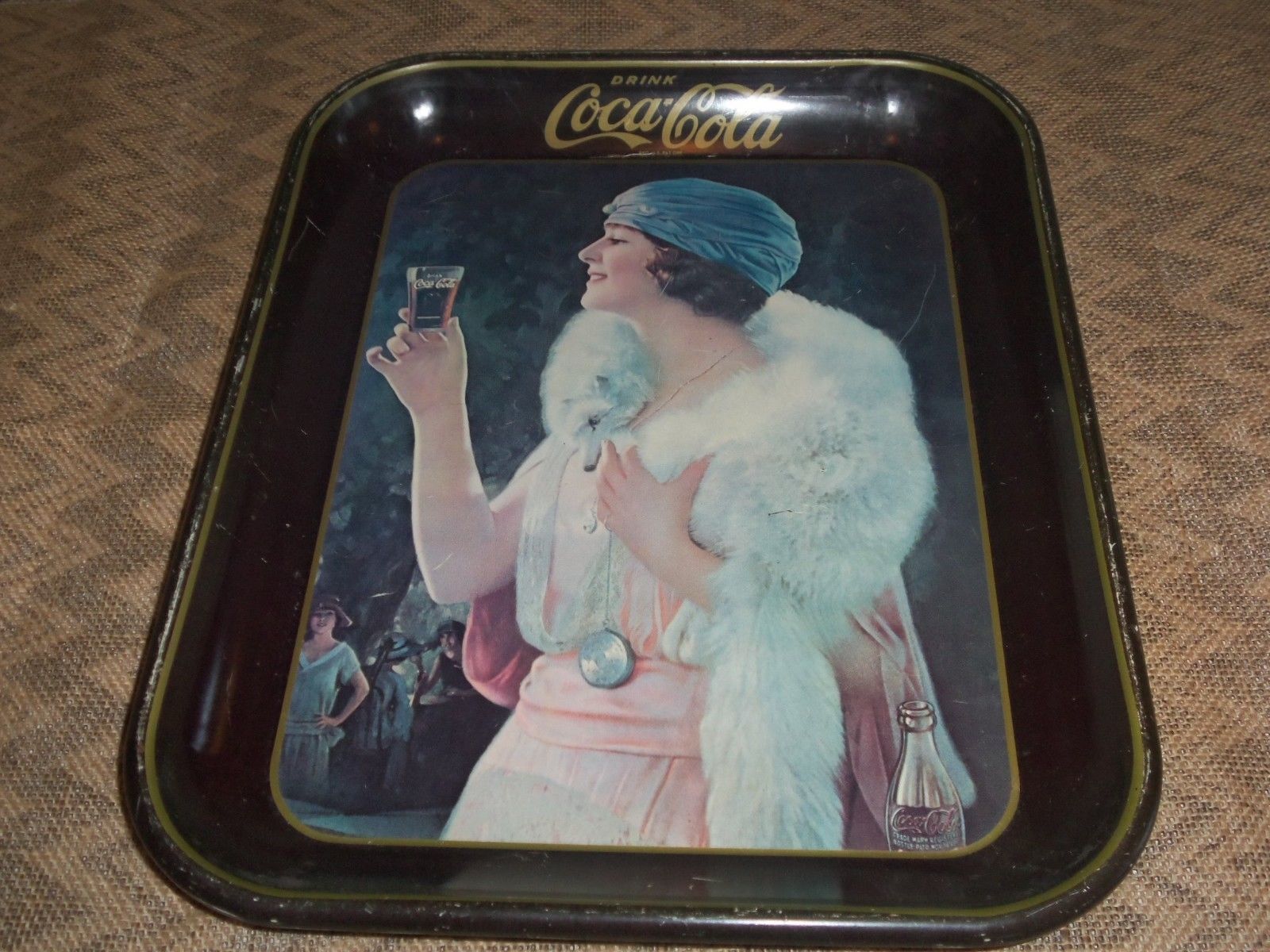 Title (ebay affiliate link): Coca-Cola real Original Vintage 1925 Metal Serving Tray Flapper Party Girl coke