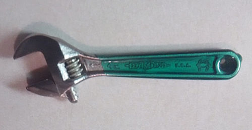 Title (ebay affiliate link): VINTAGE 4" GREEN HANDLE DIAMOND HORSESHOE ADJUSTABLE WRENCH MADE IN USA - NOS