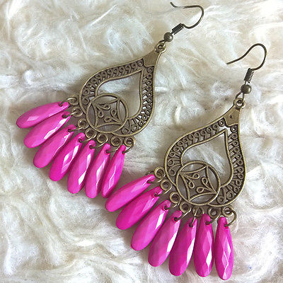 Title (ebay affiliate link): Vintage Womens Bohemian Antique-Metal Charm Fuschia Beads Dangle Hook Earrings