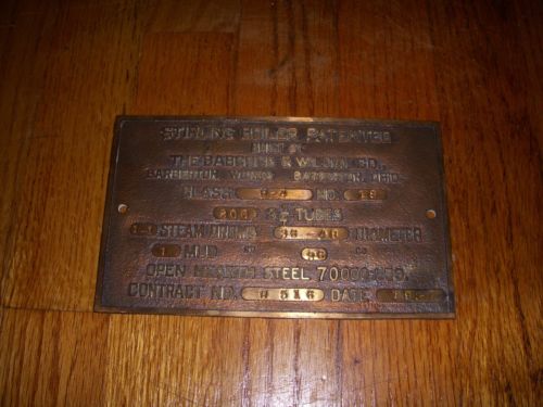 Title (ebay affiliate link): Antique Brass Stirling Boiler Babcock & Wilcox Co Plaque Sign Dated 1937