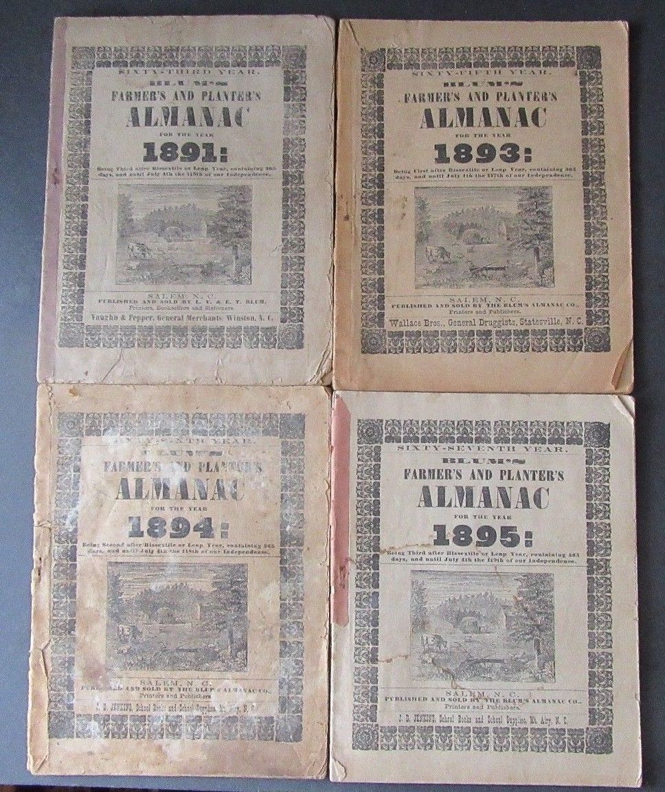 Title (ebay affiliate link): (4) VINTAGE FARMERS & PLANTERS ALMANAC BOOKS 1891-1895 -SALEM, NC