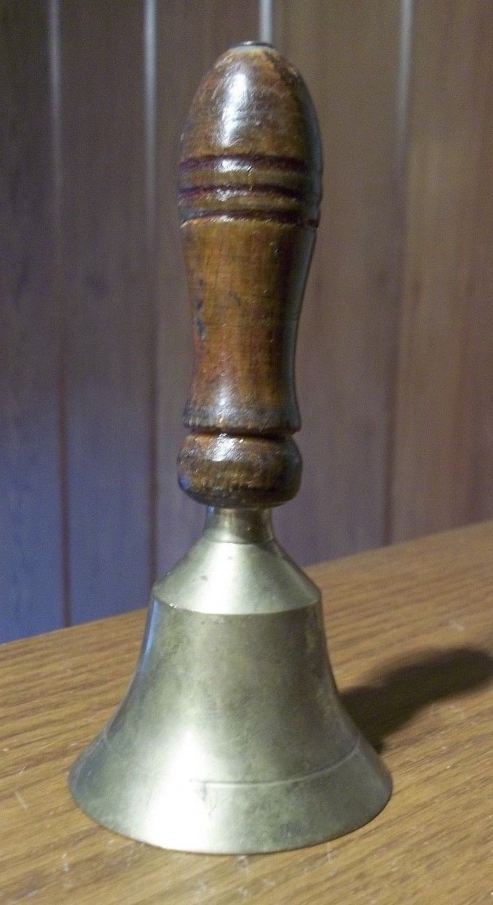 Title (ebay affiliate link): Vintage SMALL BRASS BELL with Wood Handle 5 1/4" tall