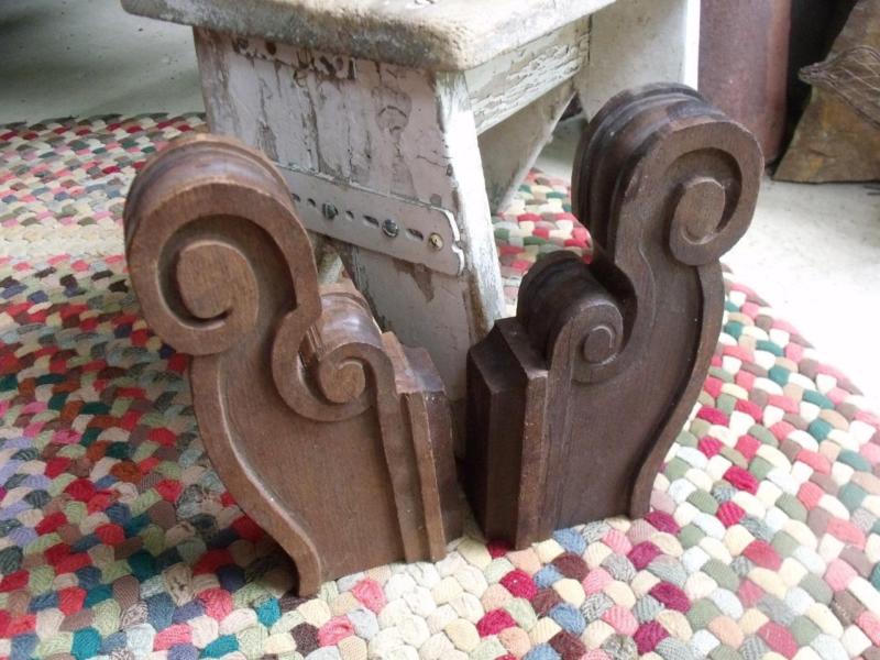 Title (ebay affiliate link): 2 Primitive Antique Decorative Carved Wood Pieces Pediments Furniture Feet or?