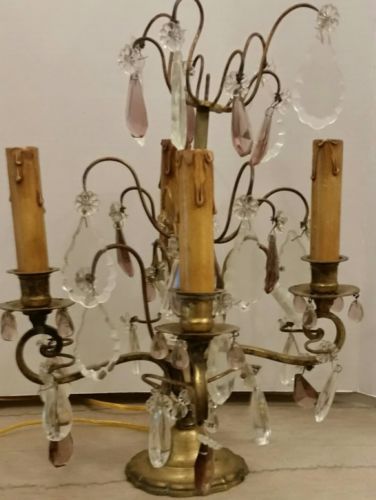 Title (ebay affiliate link): Antique Table Lamp w/4 Arms-Prisms /Flowers- Amethyst Prisms -For Parts