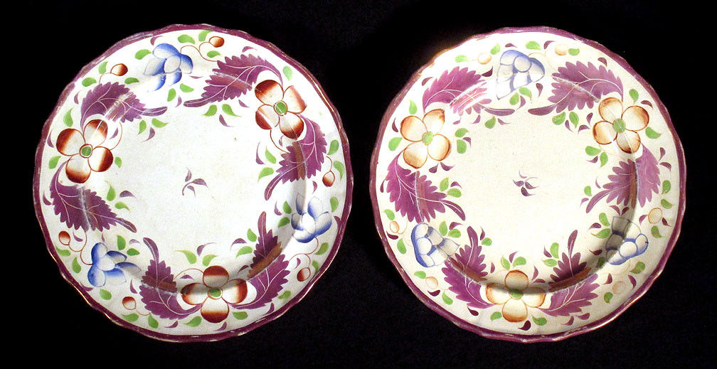1856 Lot 2 Antique WILLIAM DAVENPORT Staffordshire PINK LUSTER Dinner Plates
