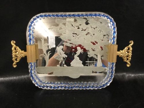 Title (ebay affiliate link): Vintage Italian Venetian Etched Table Mirror Perfume Bottle Holder Dressing