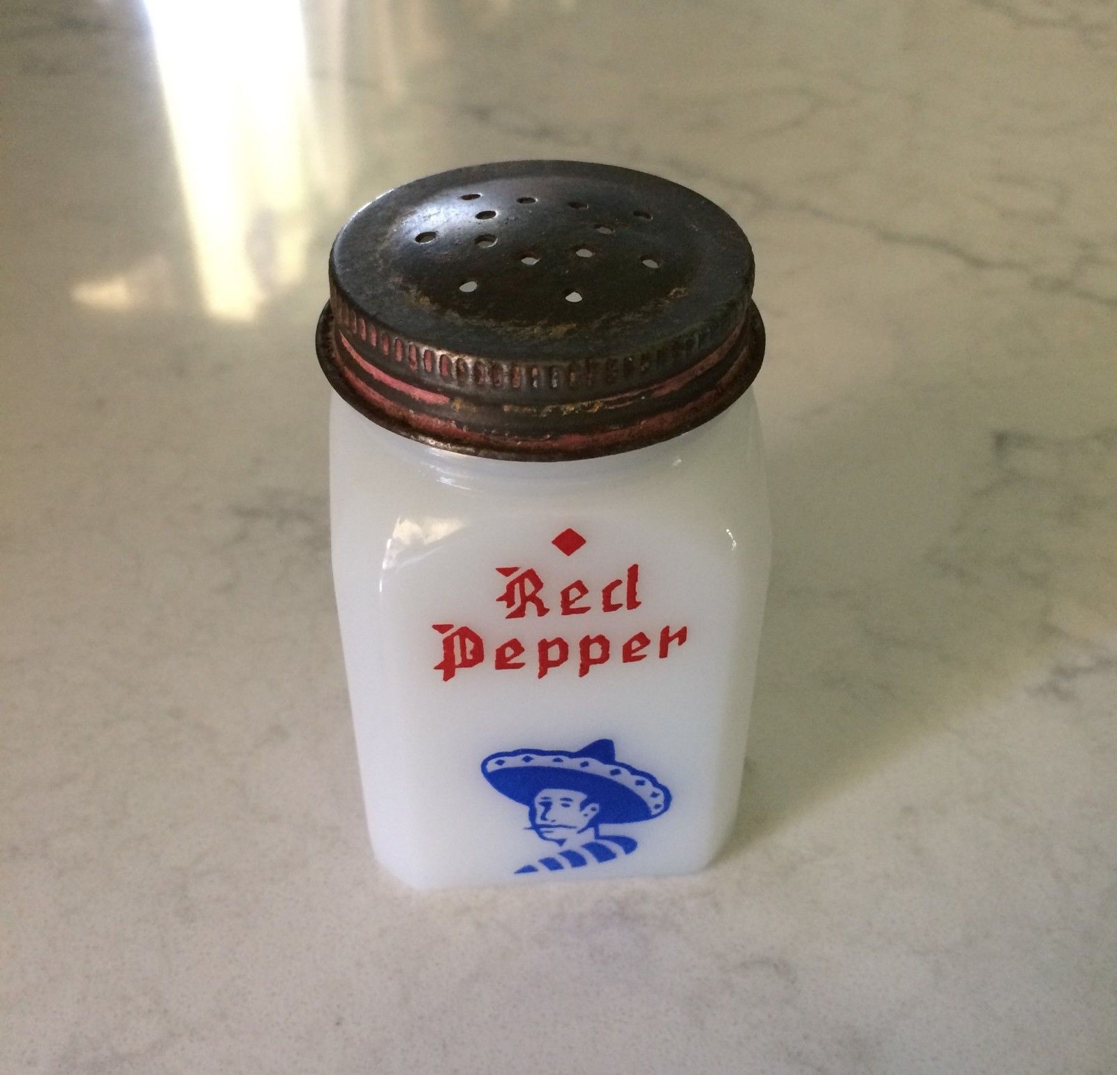 Red Pepper Milk Glass Shaker Man With Sombrero Vintage
