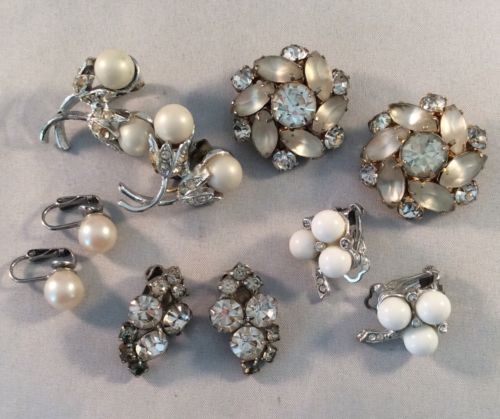 Vintage Lot Earrings Rhinestone, Milk Glass Beads, Pearl