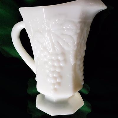 Vtg Anchor Hocking White Milk Glass Footed Pitcher Grape and Leaves Pattern