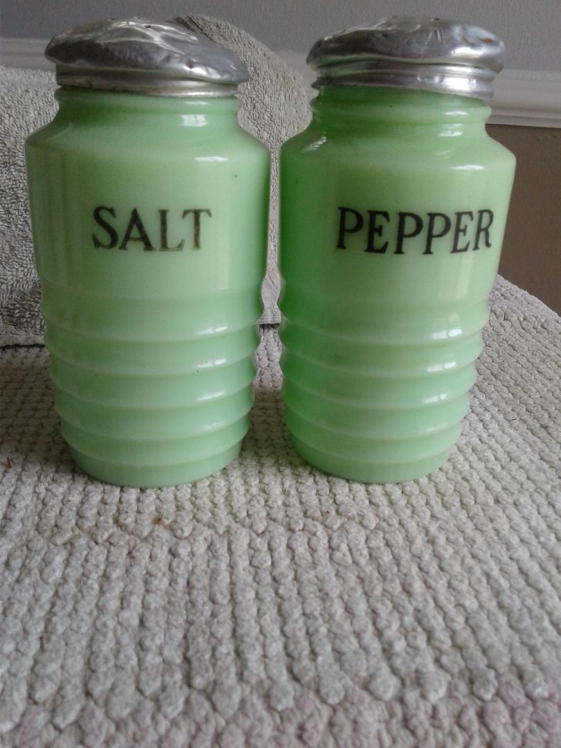 Title (ebay affiliate link): Vintage Green Jadeite Milk Glass Salt and Pepper Shakers Ribbed