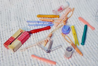 Antique Dolly Hair Curler Rollers Mini Kleenex Box ETC