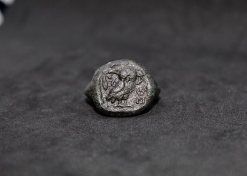 Title (ebay affiliate link): ANCIENT GREEK BRONZE FINGER RING OWL AND OLIVE BRANCH