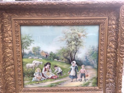 Title (ebay affiliate link): Victorian Original Print In Ornate Gilded Wood Frame, Wavy Glass, Oak Back Board