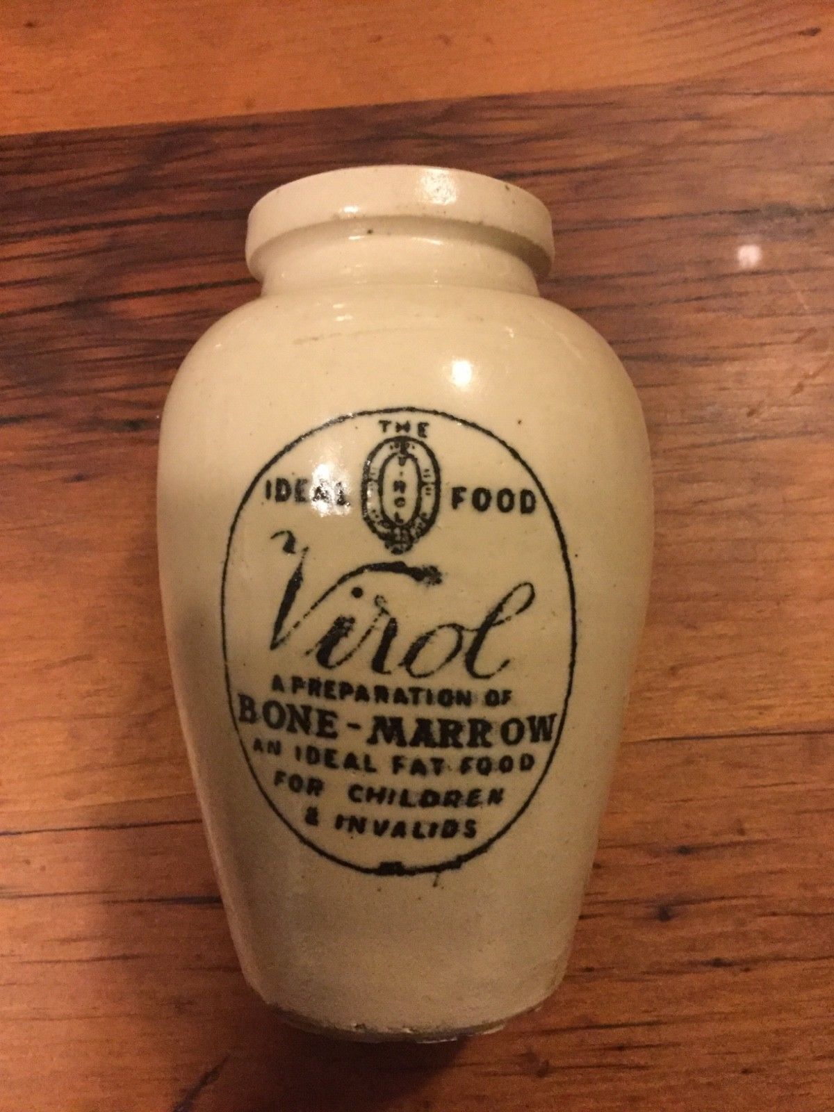 Antique advertizing STONEWARE  Virol crock  pot jug dig dug Old