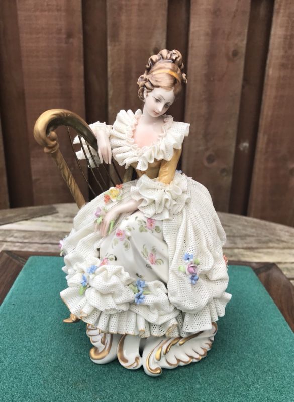 Title (ebay affiliate link): CAPODIMONTE DRESDEN LACE FIGURE OF LADY WITH HARP BY GIUSEPPE CAPPE