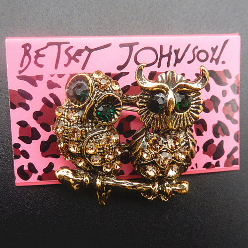 Title (ebay affiliate link): Antique Copper Owls Crystal Animal Betsey Johnson Brooch Pin