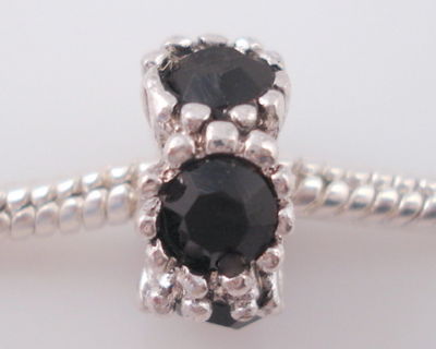5X Antique Silver Black Charm Beads Fit Bracelet AS25c