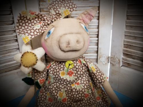 Title (ebay affiliate link): Primitive Little Pig Doll w/ Daisy Flower ~*~ Eyelids ~*~ Piggy ~*~ Farm ~*~