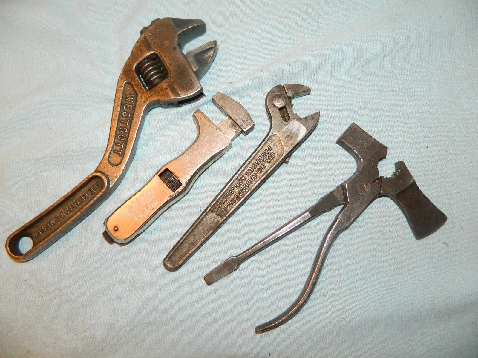 LOT/4 ANTIQUE OLD TOOL WRENCHS WESTCOTT CELLMAN POLLY ALL MADE USA ~~NO RESERVE
