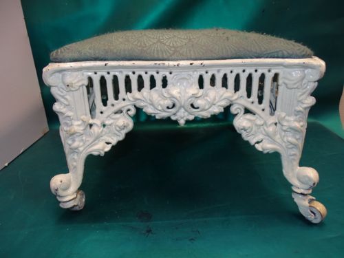 Title (ebay affiliate link): Antique Victorian Cast Iron Foot Stool W/ Wooden Wheel Casters Beautiful Look !