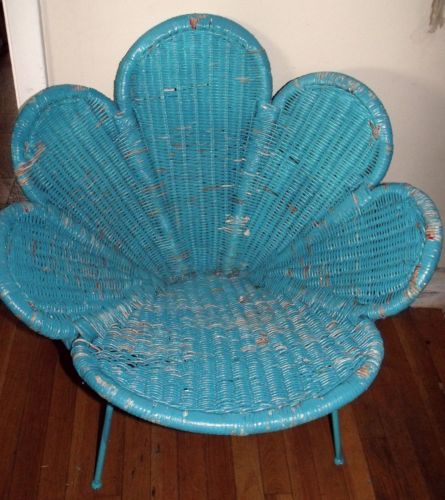 Title (ebay affiliate link): Vintage RARE Mid Century Mod Wicker Rattan & Iron Leg Bucket Scoop Flower Chair