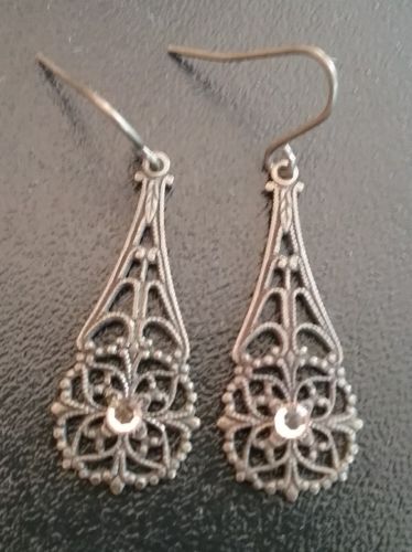 Title (ebay affiliate link): Vintage Antique Gold Tone Drop Earrings Filigree With AB Aurora Stone