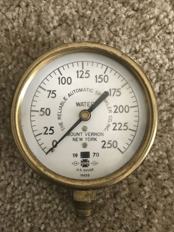 Title (ebay affiliate link): Vintage 1970 USG Water Pressure Gauge 250 psi Brass Finish USA Steampunk