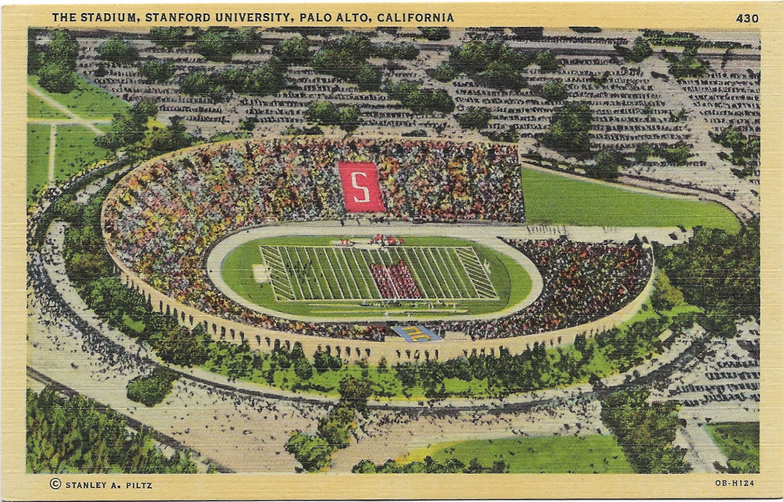 Title (ebay affiliate link): Linen postcard, Football stadium, Standford University, Palo Alto, CA